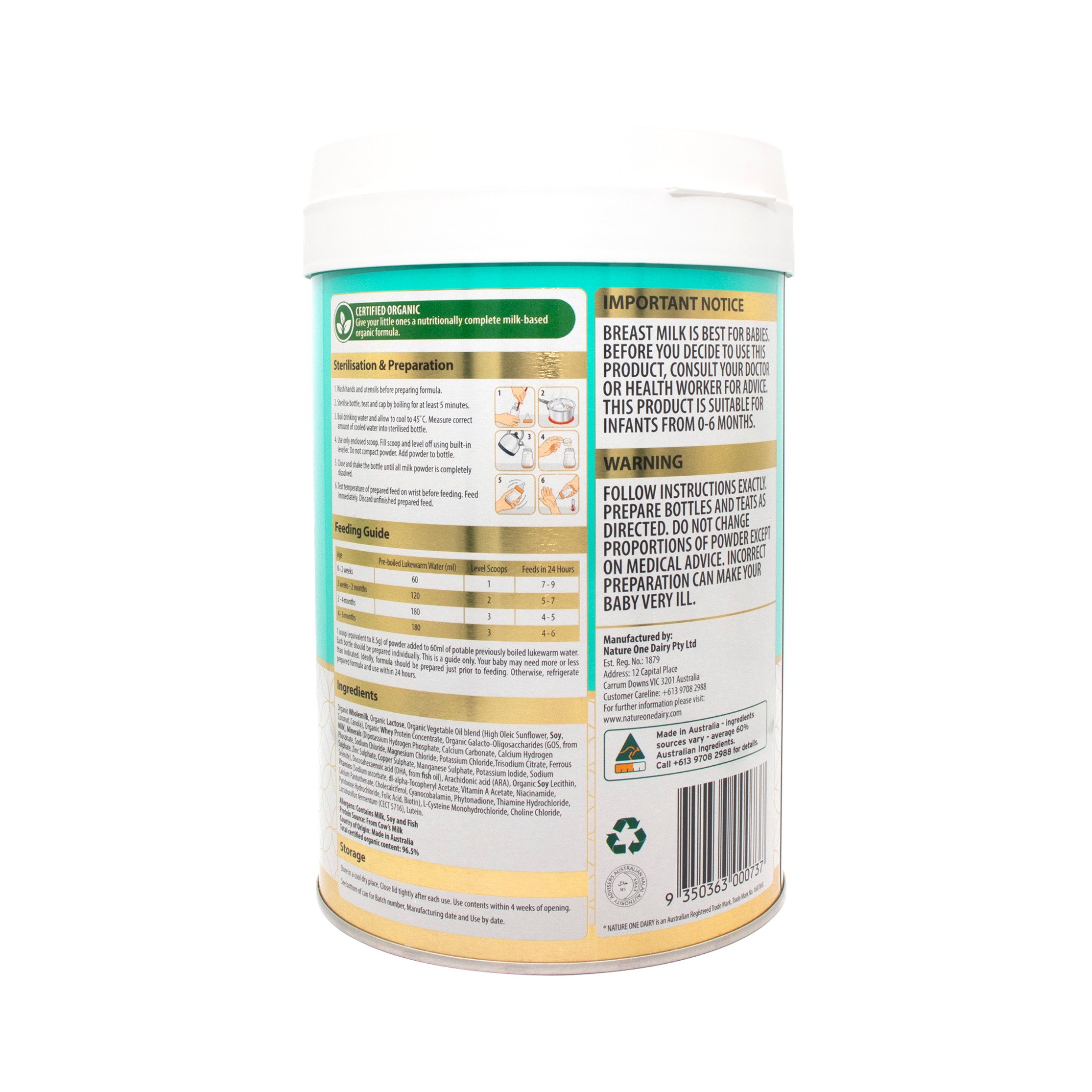 母乳是对婴儿最好的选择。世界卫生组织(WHO)建议在生命的前6个月进行纯母乳喂养,Nature One Dairy Pty Ltd充分认识到母乳的首要地位、价值和优越性,支持世卫组织推荐的纯母乳喂养。