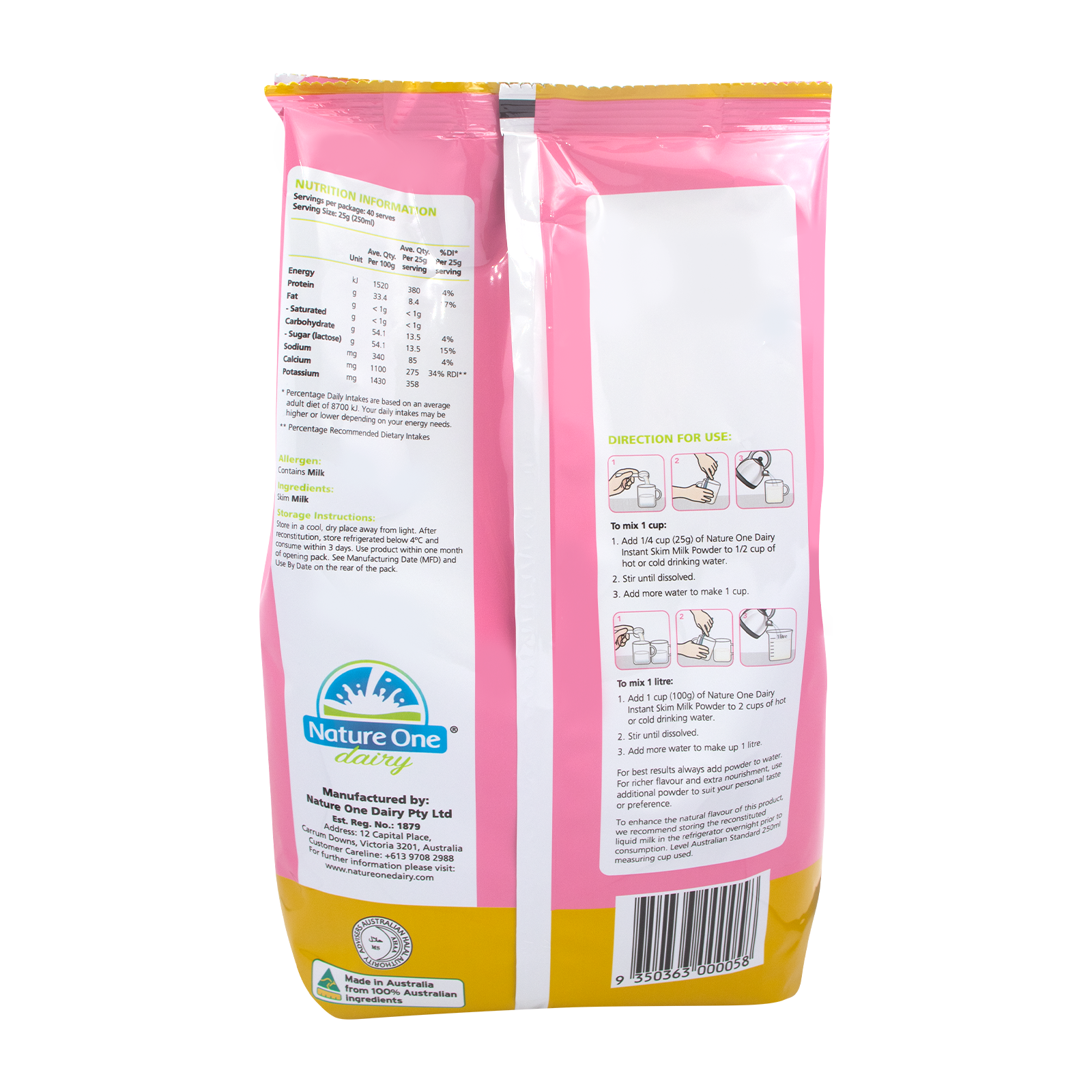 脱脂奶中的蛋白质含有人体每日所需的全部必需氨基酸,使其成为高品质、完整蛋白质的来源。蛋白质还能够提升饱腹感并促进能量消耗,从而有助于健康的体重管理。Nature One Dairy速溶脱脂奶粉富含必需营养素,同时热量较低,是您健康饮食计划的绝佳补充,同时不牺牲美味。