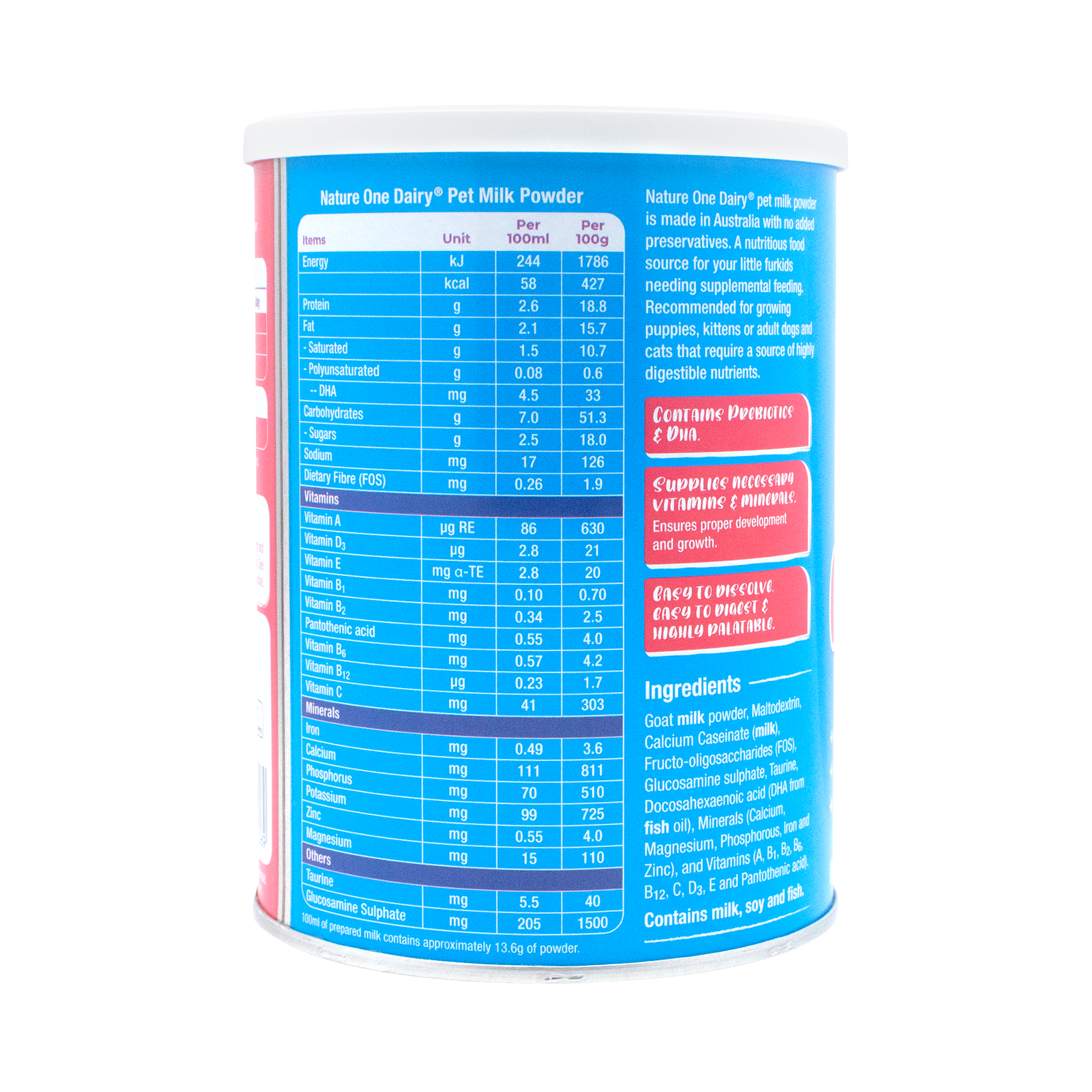 奥纯冠宠物羊奶是一种为所有年龄段宠物特别配制的羊奶粉。这款美味的宠物奶是理想的营养补充品,温和易消化,适合乳糖不耐受的宠物。奥纯冠宠物羊奶 不含添加糖,配方中含有牛磺酸、DHA(来源于鱼油)、维生素E、B族维生素、氨基葡萄糖和钙,以满足宠物每日的营养需求。