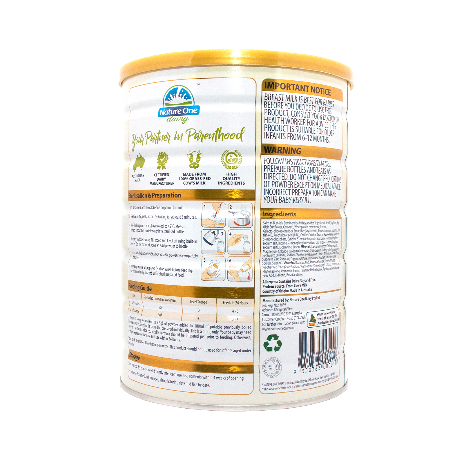 母乳是对婴儿最好的选择。世界卫生组织(WHO)建议在生命的前6个月进行纯母乳喂养,Nature One Dairy Pty Ltd充分认识到母乳的首要地位、价值和优越性,支持世卫组织推荐的纯母乳喂养。