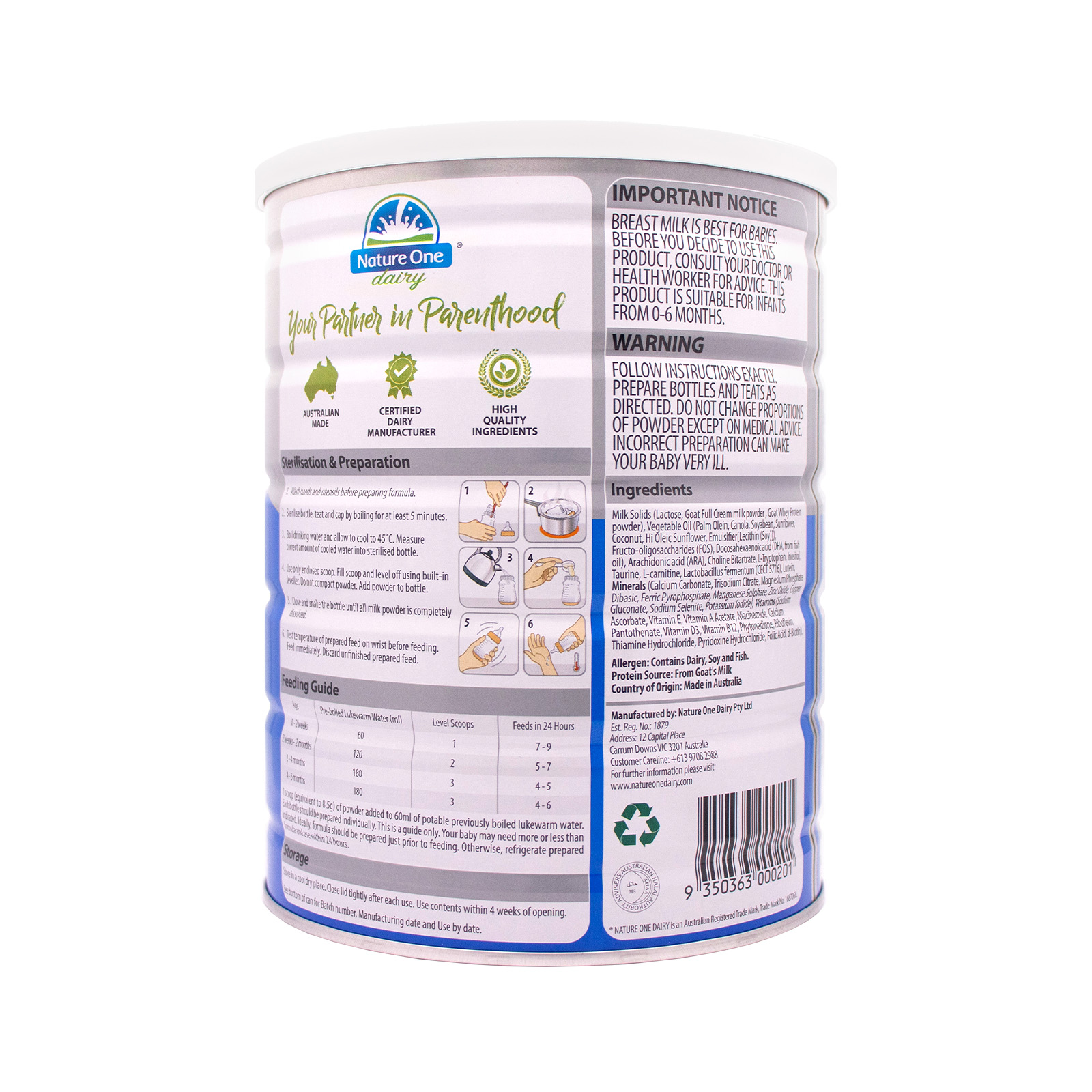 乳固体(乳糖,全脂山羊奶,山羊奶乳清蛋白粉),混合植物油(棕榈油,菜籽油,大豆油,葵花籽油,椰子油,高油酸葵花籽油,乳化剂(大豆磷脂)),低聚果糖,二十二碳六烯酸(DHA, 取自鱼油), 花生四烯酸(ARA),酒石酸胆碱,L-色氨酸,肌醇,牛磺酸,左旋胆碱,发酵乳杆菌(CECT5716),叶黄素,矿物质(碳酸钙,柠檬酸钠,磷酸氢二镁,焦磷酸铁,硫酸锰,氧化锌,葡萄糖酸铜,亚硒酸钠,碘化钾),维生素(抗坏血酸钠,维生素E,醋酸维生素A,烟酰胺,泛酸钙,维生素D3,维生素B12,植物甲萘醌,核黄素,盐酸硫胺素,盐酸吡哆醇,叶酸,d-生物素)。