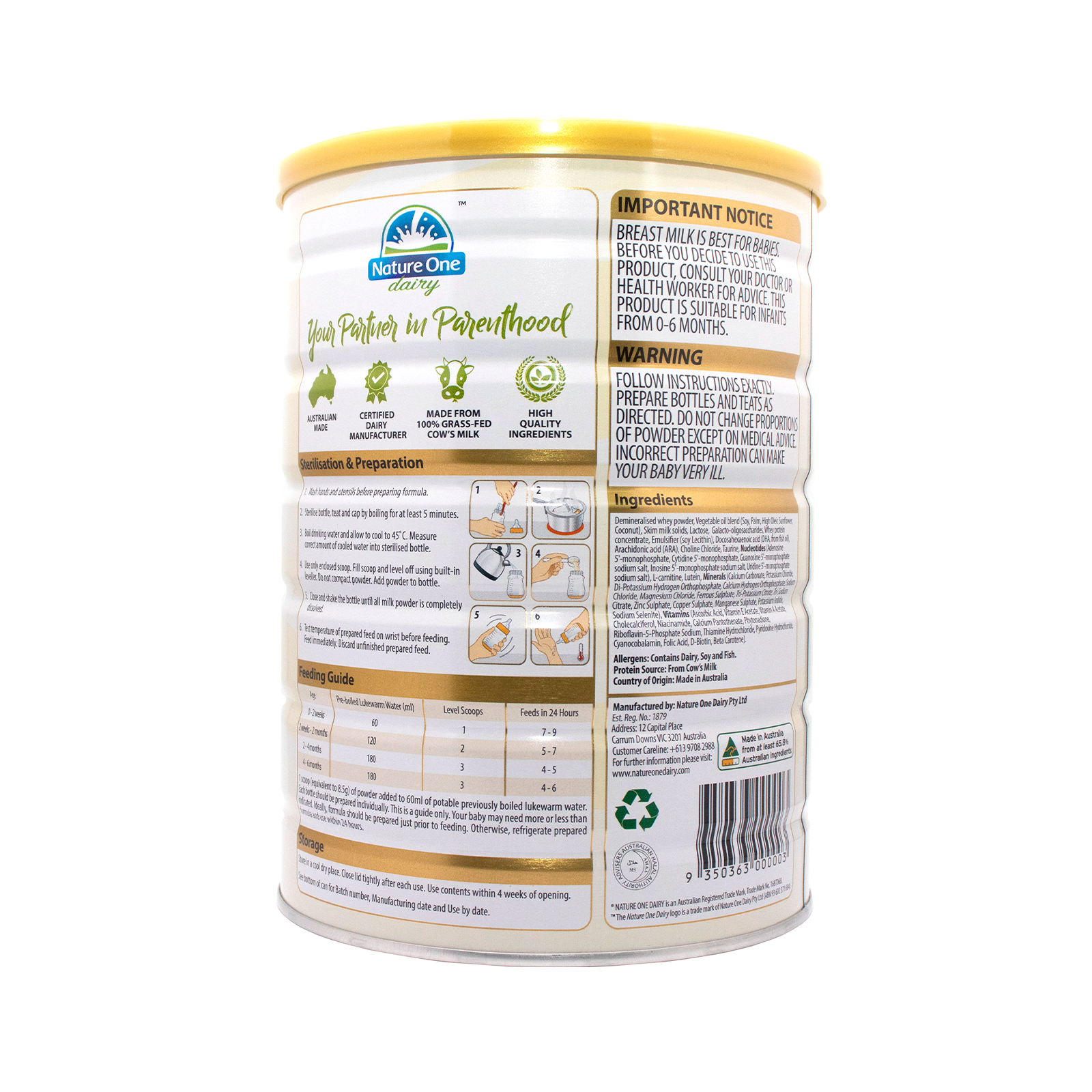 母乳是对婴儿最好的选择。世界卫生组织(WHO)建议在生命的前6个月进行纯母乳喂养,Nature One Dairy Pty Ltd充分认识到母乳的首要地位、价值和优越性,支持世卫组织推荐的纯母乳喂养。
