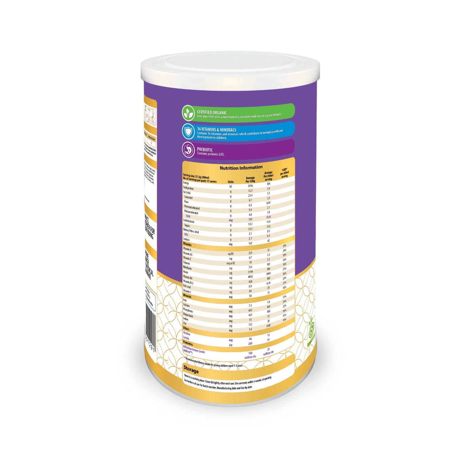 Organic Junior Nutritious Milk Drink Step 4 is a nutritious milk drink designed for your toddler from 3 years onwards. It provides the important nutrients your toddler needs to support his/her physical growth and mental development.
